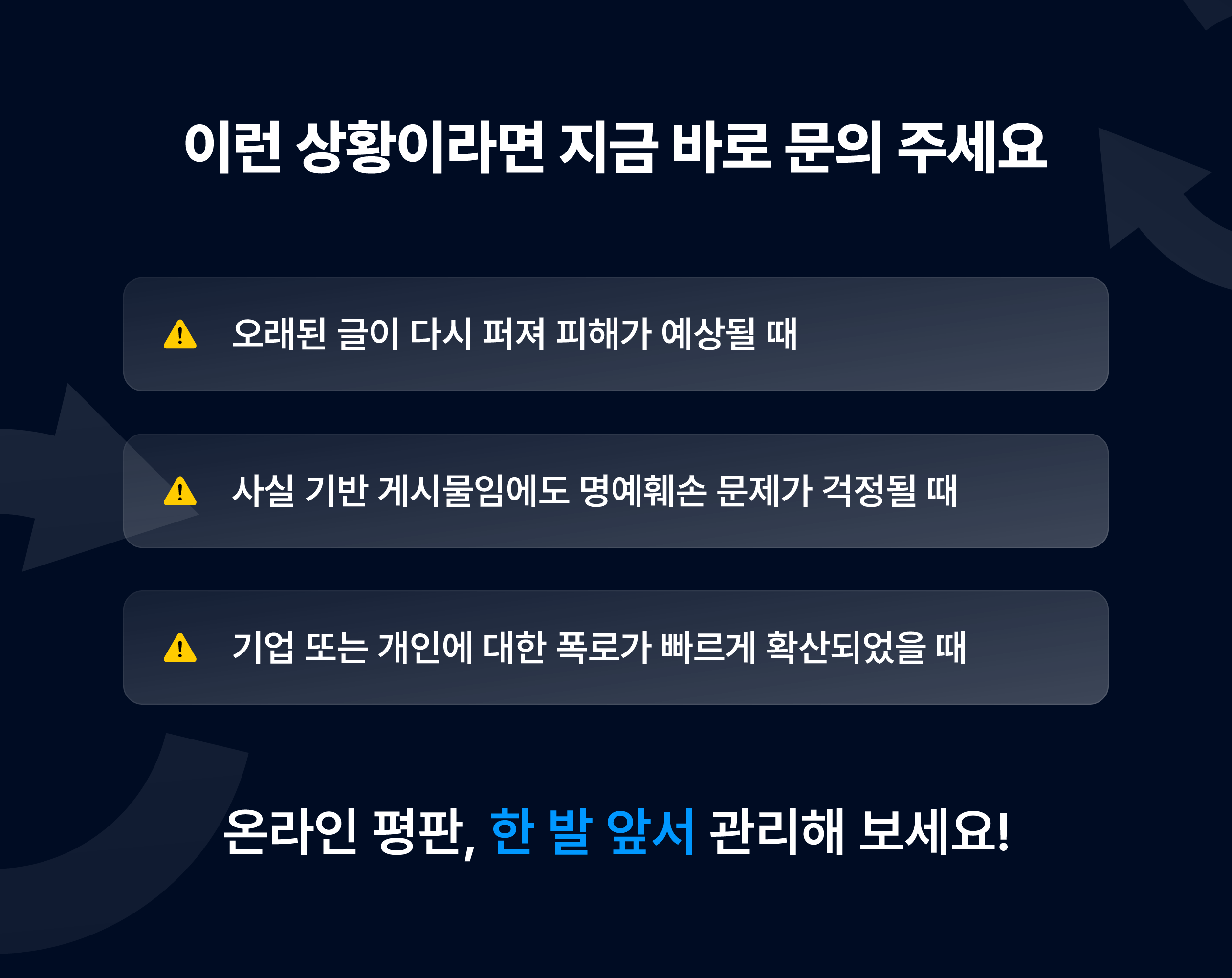 그러나 다양한 플랫폼에서 삭제가 지연되거나 문제 게시글의 캡처가 재유포되거나 개인이 직접 관리하기 어려운 상황을 자주 접합니다.